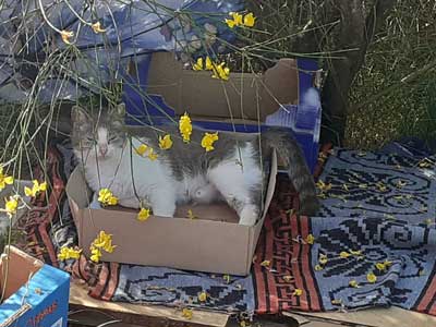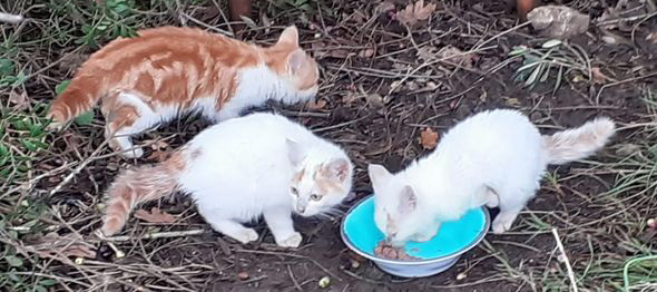 In der Zwischenzeit bauten wir einige Unterschlupf- und Futterstellen auf und die Katzen kamen immer näher und wir haben sie alle kastriert und medizinisch versorgt.