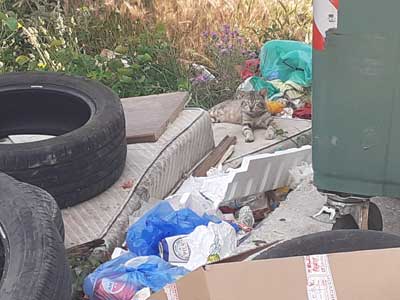 Als wir anfingen, die Katzen an den Mülltonnen an der Hauptstraße in Karoumbatika (Richtung Pelekas) zu füttern, lebten sie unter schrecklichen Bedingungen – mitten im Müll, Futter nur aus den Tonnen und ohne Wasser weit und breit – und niemand schien sich darum zu kümmern.
